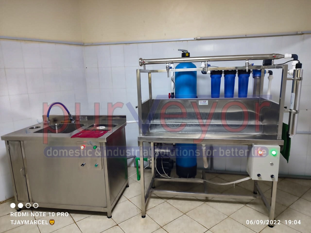 Fresh water with manual filling station and bottle rinser